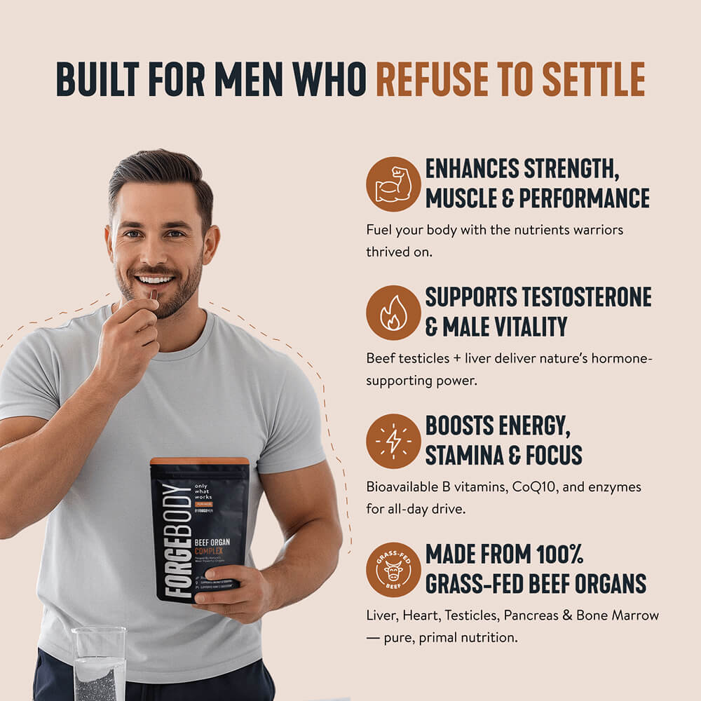 Been taking FORGE for just under a month and honestly feel like I've got my drive back. No more afternoon crash, workouts are stronger, and my focus at work is next-level. Didn't think organs in a capsule would do this but wow.