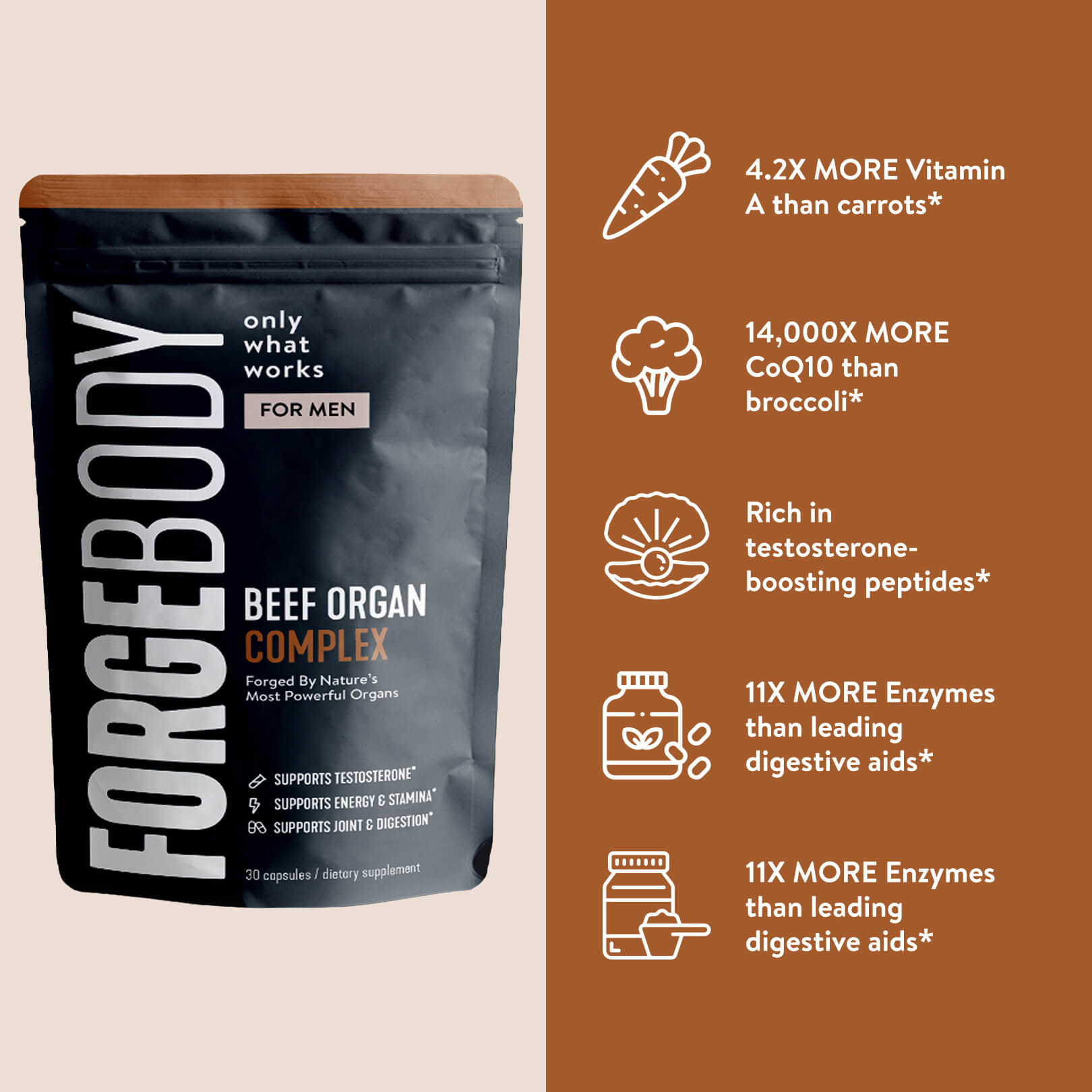 Choosing the 6-month supply of FORGE Beef Organ Complex ensures you unlock the longest-lasting results.